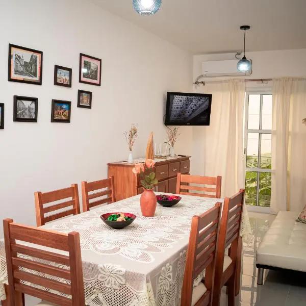 Departamentos Giova坐落于萨尔塔,距离云间列车仅有4公里,提供餐厅、酒吧和礼宾服务。这家公寓提供免费私人停车位、客房服务和免费WiFi。 这家公寓配有2间卧室、1间浴室、床上用品、毛巾、带有线频道的平板电视、用餐区、设施齐全的厨房以及市景露台。这家空调公寓还配备休息区以及1间带坐浴盆和淋浴设施的浴室。