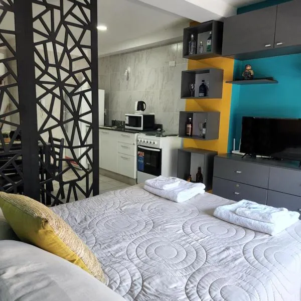 Delta Boutique Loft, en el centro de Salta, p/ 3坐落于萨尔塔,距离El Palacio酒店加莱里亚斯购物中心有2.1公里,距离云间列车有3公里,提供阳台和免费WiFi。这家公寓距离萨尔塔市政厅有3公里,距离北方巨人体育场有3.1公里。 这家公寓配有1间卧室、1间浴室、床上用品、毛巾、带有线频道的平板电视、用餐区、设施齐全的厨房以及山景露台。