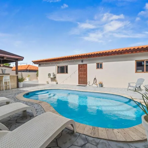 NEW ! Casa Orcuyo享有花园景,配备花园、露台和烧烤设施,距离Arikok National Park约有9.3公里。这家空调住宿距离Hooiberg Mountain有不到一公里,为客人提供免费WiFi,内部提供私人停车位。 这家度假屋拥有2间卧室、带有线频道的平板电视、带冰箱和烤箱的设施齐全的厨房以及1间带淋浴设施的浴室。这家度假屋也配有休息区和1间浴室。