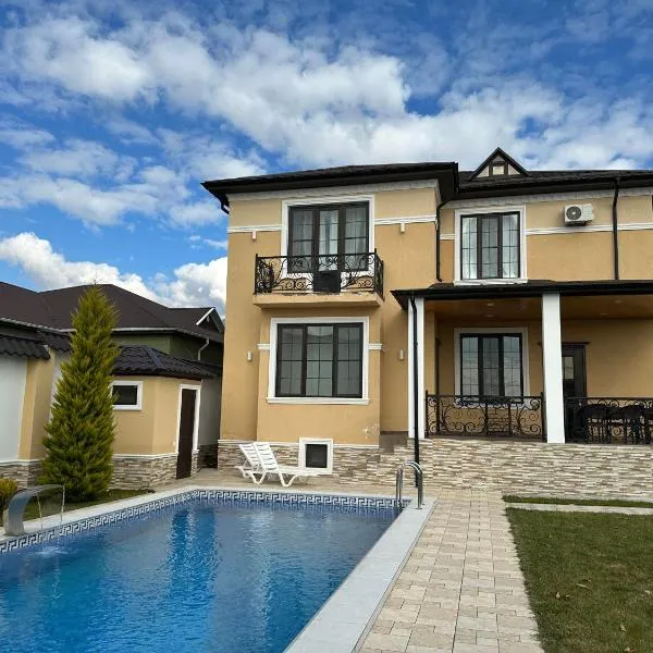 Qafqaz坐落于盖贝莱,配有全年开放的室外泳池,享有山景。这家自助式别墅配有私人泳池、花园和免费私人停车位。 这家别墅提供露台,享有市景,拥有5间卧室、起居室、平板电视、带冰箱和烤箱的设施齐全的厨房以及2间带淋浴设施的浴室。这家空调别墅还配备休息区、洗衣机以及2间带吹风机的浴室。 占贾国际机场(Ganja International)距离住宿有175公里。