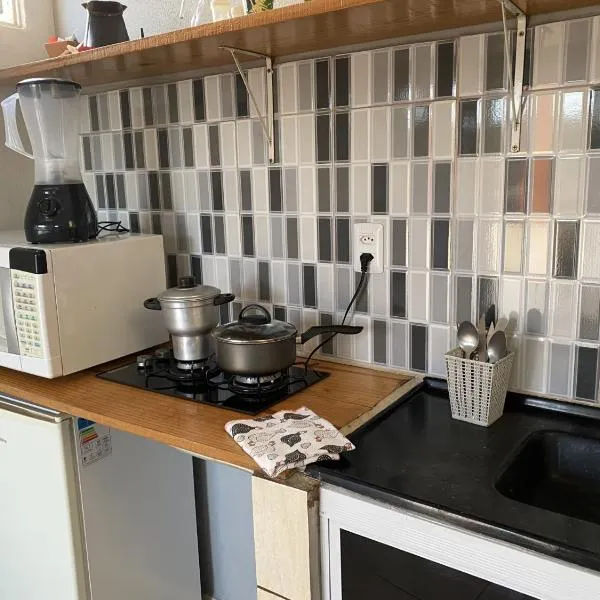 Casa e Ktinetes na praia de Japaratinga位于雅帕拉廷加,距离贾帕拉廷加海滩(Japaratinga)有13分钟步行路程,距离盖尔斯天然泳池有14公里。住宿配备免费WiFi,内部提供私人停车位。 房间配有露台、平板电视以及带淋浴设施的私人浴室。部分房间还提供带烤箱、迷你吧和炉灶的厨房。