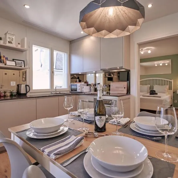 CityChalet historic公寓坐落在Aare River河上,距离因特拉肯(Interlaken)市中心仅有300米,是一座受保护的文物建筑,周围环绕着一个大花园。公寓提供免费WiFi和免费私人停车场。 乡村风格的一室公寓和公寓均配备有线电视、带用餐区的现代化厨房或小厨房以及浴室。 小木屋的客人可以使用花园内的烧烤设施。
