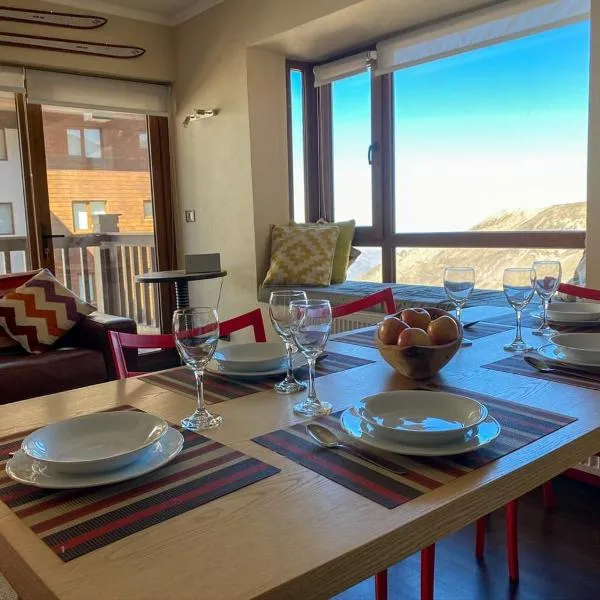 Apartamento El Colorado享有山景,配备共用休息室、餐厅和滑雪至门口雪道,距离阿劳卡诺公园约有46公里。这家公寓配有免费私人停车位。客人可以在周边地区体验徒步、滑雪和桌球等活动。 这家公寓提供2间卧室、2间浴室、床上用品、毛巾、带卫星频道的平板电视、用餐区、设施齐全的厨房以及市景露台。这家公寓还提供休息区以及2间带淋浴设施的浴室。 这家住宿拥有带乒乓球的游戏室。