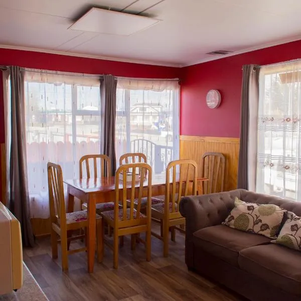 Cabañas Patagonia Encantada酒店位于纳塔莱斯港(Puerto Natales),提供自助式简易别墅,距离海岸4公里。 Cabañas Patagonia Encantada酒店的山景简易别墅设有一间私人浴室和一间设备齐全的厨房。 Cabañas Patagonia Encantada酒店设有花园,并提供免费停车场。酒店允许客人携带宠物入住。