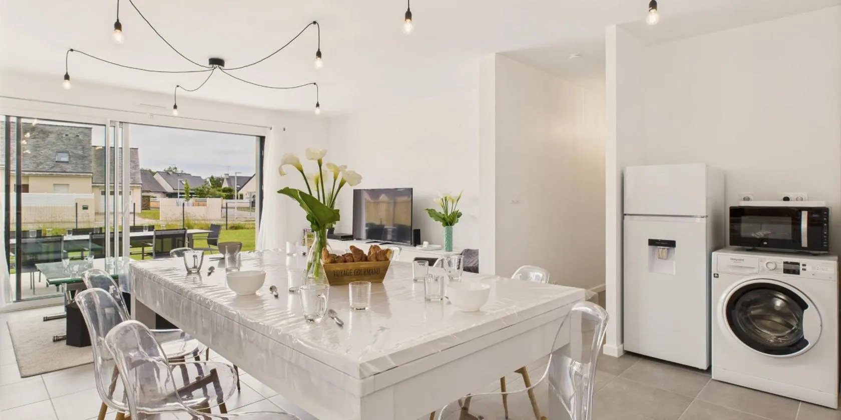 Sunset View over beach at Sables d'Or位于萨布勒多尔莱潘,距离米尼厄海滩(Minieu Beach)有6分钟步行路程,提供庭院、花园和免费WiFi。这家度假屋配备阳台。客人可以在周边地区体验徒步、骑行和飞镖等活动。 这家度假屋配有4间卧室、4间浴室、床上用品、毛巾、带卫星频道的平板电视、用餐区、设施齐全的厨房以及海景露台。
