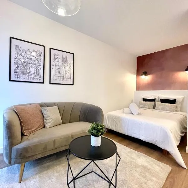 Grand studio centre ville Saint-Etienne享有花园景,配备酒吧和庭院,距离圣埃蒂安室天顶音乐厅约有19分钟步行路程。这家公寓距离拉克鲁瓦有36公里,距离Feurs hippodrome有45公里。 这家公寓配有1间卧室、起居室、带冰箱和咖啡机的设施齐全的厨房以及1间带淋浴设施和免费洗浴用品的浴室。1间浴室提供吹风机。