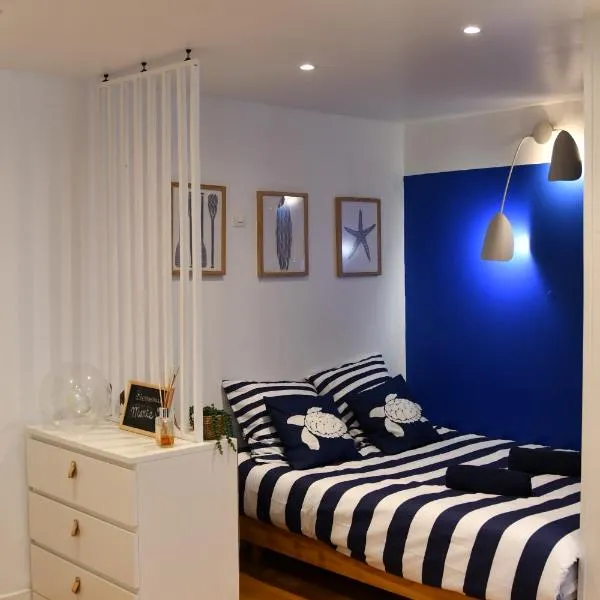 Mobydick位于滨海图维列,享有海景,距离特鲁维尔海滩(Trouville Beach)有几步路,距离特鲁维尔娱乐城有2分钟步行路程。这家海滨住宿的客人可以使用阳台和免费WiFi。 这家公寓配备1间卧室、带冰箱和洗碗机的小厨房、平板电视、休息区以及1间带淋浴设施的浴室。这家公寓也提供1间浴室。 住宿内部配备露台。客人可以在这家公寓附近体验徒步。