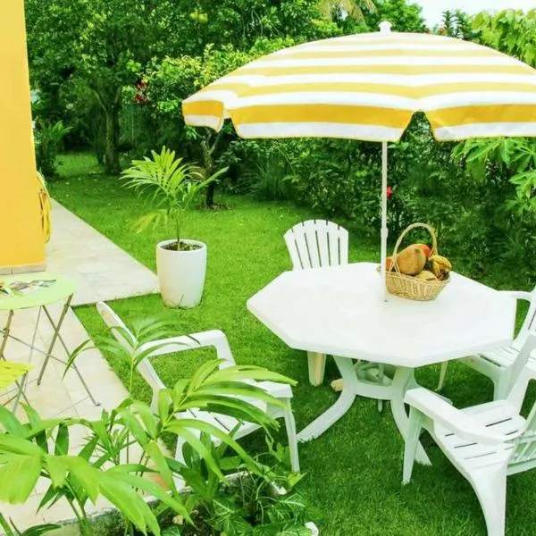Ti Kaz À Patou, au coeur de l'île.坐落于拜马欧,提供露台。这家自助式公寓拥有花园和免费私人停车位。 这家空调公寓配有2间卧室、起居室、带冰箱和咖啡机的设施齐全的厨房以及1间带淋浴设施和吹风机的浴室。这家公寓也配有休息区和1间浴室。 彭德-雅皮特国际机场距离住宿有9公里。