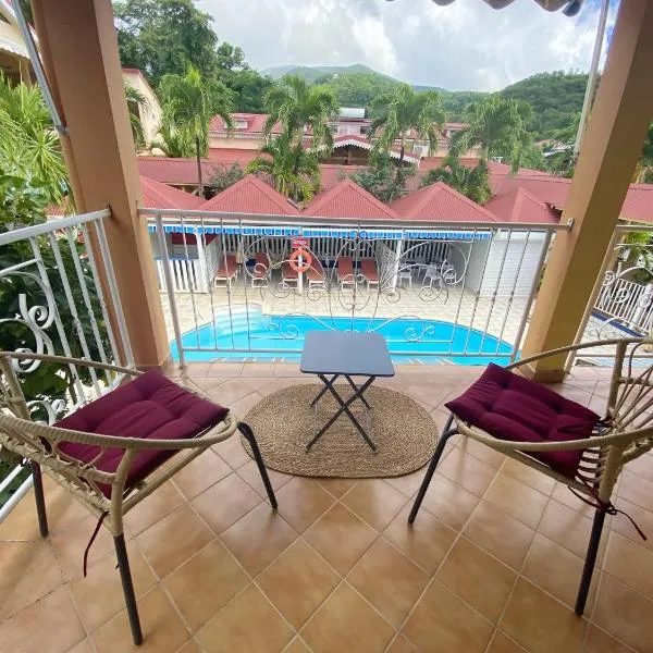 Studio Malacca, Malanga et Majacudja - Ô Cœur de Deshaies坐落于德赛,配备免费WiFi,配有游泳池、花园和露台,享有市景。内部提供私人停车位。 所有房间均配有海景阳台、带冰箱和微波炉的厨房以及带淋浴设施的私人浴室。住宿还配备炉灶、吐司机、咖啡机和电热水壶。 这家公寓距离大昂斯海滩(Grande Anse Beach)有1.8公里。