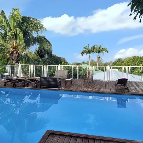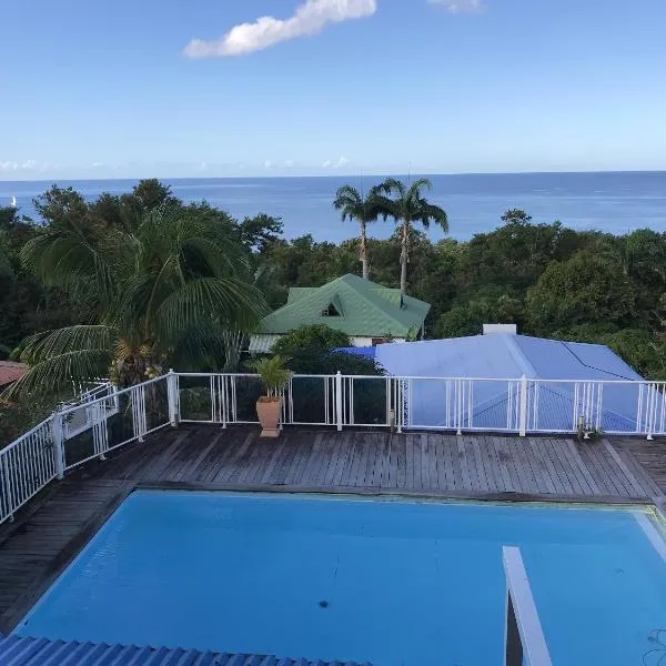 LE TRI HAUT DE BELLEVUE - Bungalow Colibri位于黑角,提供带免费WiFi的花园景客房,配备户外游泳池、花园和露台。内部提供私人停车位。 这家小木屋配备2间卧室、带冰箱和洗碗机的厨房以及1间带淋浴设施、吹风机和洗衣机的浴室。这家小木屋也提供1间浴室。 这家小木屋距离马里戈特海滩(Marigot Beach)有2.1公里。