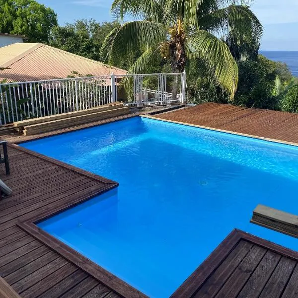 Maison charmante Pointe-Noire, vue mer坐落于黑角,提供花园和露台,距离马里戈特海滩(Marigot Beach)有5分钟步行路程。这家住宿的客人可以使用乒乓球桌、免费私人停车位和免费WiFi。 这家空调度假屋提供2间卧室、卫星频道电视以及带冰箱和烤箱的厨房。 彭德-雅皮特国际机场距离住宿有42公里。