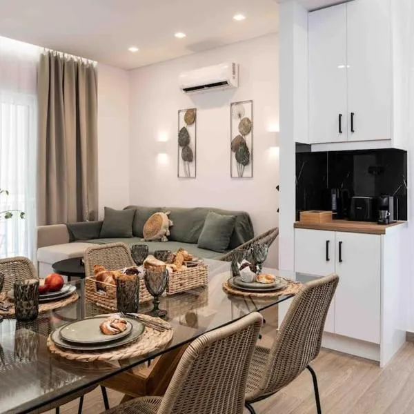 Alcmene Lux Apartment by "elite"享有市景,提供露台和阳台,距离桑特镇海滩约有9分钟步行路程。这家公寓配备带庭院和免费WiFi的客房。 这家空调公寓配有2间卧室、起居室、带冰箱和咖啡机的设施齐全的厨房以及1间带淋浴设施和吹风机的浴室。这家公寓也提供休息区和1间浴室。 这家公寓提供汽车租赁服务。