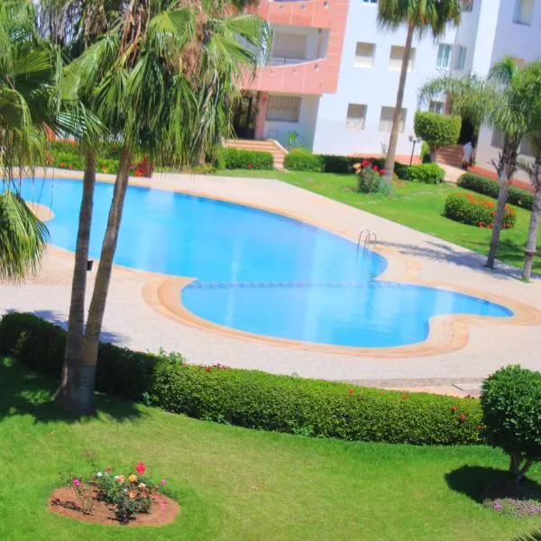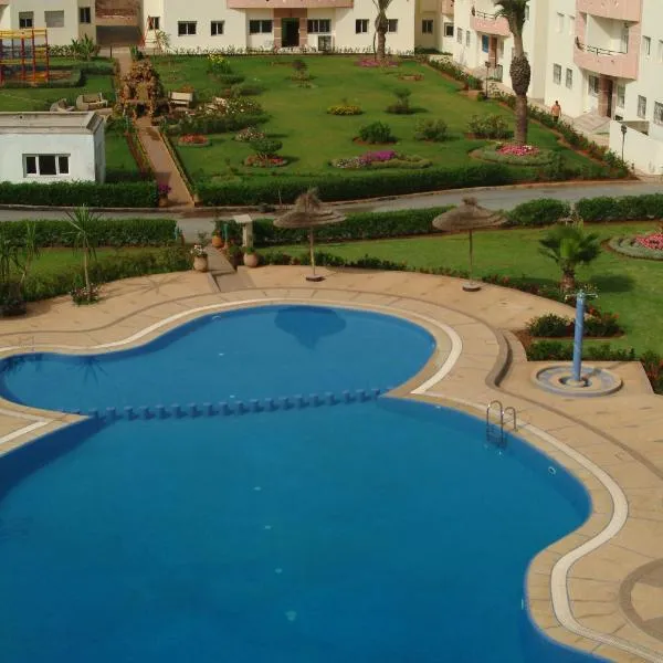 Appartement pied d'eau sur la corniche de Mohammedia酒店位于穆罕默迪耶(Mohammedia),设有花园、露台以及带光纤的免费WiFi和卫星频道的电视。公寓享有泳池景致,客人可以使用一个私人阳台。 空调公寓配备了1间浴室、客厅以及带烤箱和烤面包机的小厨房。 前台可提供当地旅游建议。 公寓设有一个室内游泳池。