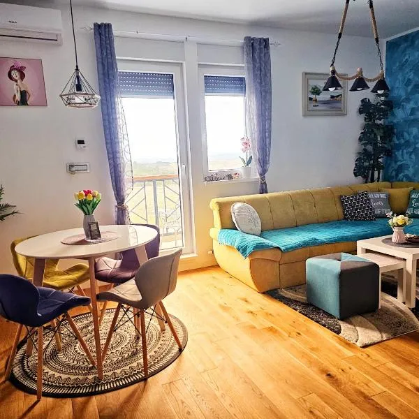 Koti apartman Zlatibor位于中塞尔维亚的兹拉蒂博尔,配有阳台,享有花园景。这家住宿的客人可以使用露台、免费私人停车位和免费WiFi。 这家公寓配有1间卧室、起居室、带冰箱和咖啡机的设施齐全的厨房以及1间带淋浴设施和免费洗浴用品的浴室。这家公寓还提供平板电视以及1间带吹风机的浴室。 摩拉瓦机场距离住宿有106公里。