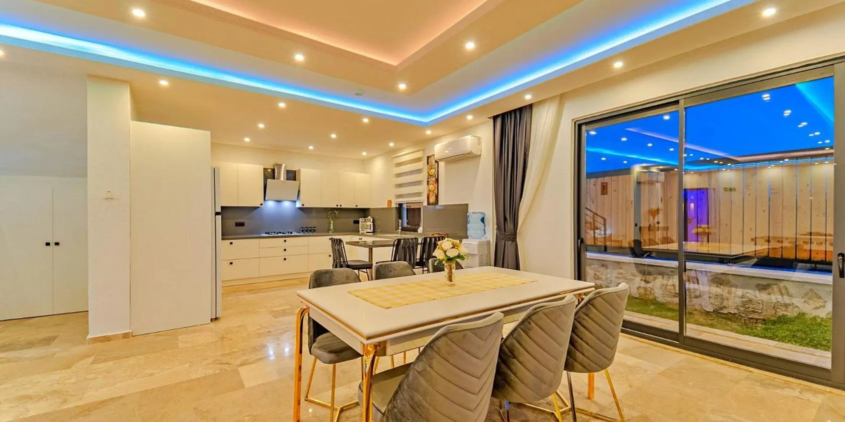 Aren Guest House in Kalkan坐落于卡斯,提供享有海景和山景的阳台、全年开放的室外泳池、桑拿房以及热水浴池。这家自助式度假屋拥有私人泳池、花园和免费私人停车位。 这家度假屋享有市景,配备露台,配有2间卧室、起居室、卫星频道平板电视、设施齐全的厨房以及2间带淋浴设施和热水浴池的浴室。这家空调度假屋还配备休息区、洗衣机以及2间带吹风机的浴室。 这家度假屋提供汽车租赁服务。