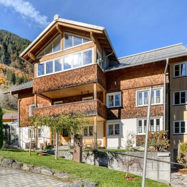 BergNest Großwalsertal位于Raggal,提供带免费WiFi的花园景客房,配有花园和滑雪至门口雪道。这家公寓配备免费私人停车位。客人可以在周边地区体验滑雪、骑行和乒乓球等活动。 这家公寓提供露台,享有山景,配有1间卧室、起居室、平板电视、带冰箱和烤箱的设施齐全的厨房以及1间带淋浴设施的浴室。1间浴室提供吹风机。 这家公寓提供儿童游乐区。