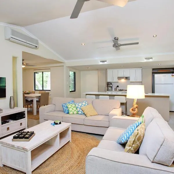 Unit 202 Plantation Resort - Rainbow Beach Aircon.Wifi.Pool. Views坐落于彩虹海滩,配有spa浴缸。这家公寓提供免费WiFi,距离彩虹海滩(Rainbow Beach)有几步路,距离大桑迪国家公园有13公里。 这家空调公寓配有2间独立卧室、带冰箱和洗碗机的设施齐全的厨房以及2间浴室。
