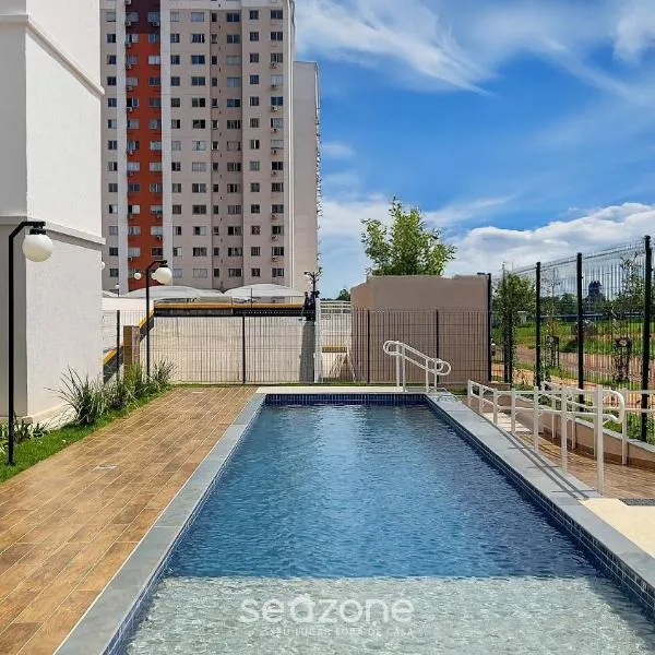 Studio Luxuoso no ID Vida Urbana Inteligente mais Alexa位于戈亚尼亚,距离戈亚尼亚巴士站有5.2公里,配备户外游泳池、免费WiFi、儿童俱乐部和24小时前台。这家自助式公寓配有私人泳池、花园和免费私人停车位。 这家公寓配备1间卧室、1间浴室、床上用品、毛巾、平板电视、设施齐全的厨房以及市景露台。
