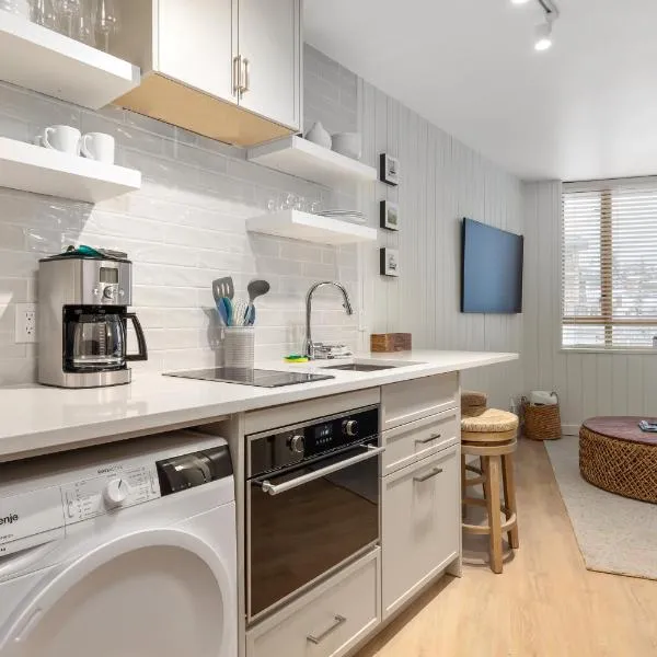 Newly Renovated KING BED STUDIO in the Village位于惠斯勒中心,距离北尼克劳斯高尔夫球场有4.1公里,距离阿尔法湖公园有4.8公里,提供免费WiFi、健身中心和空调。这家度假屋距离Whistler Mountain有17公里,距离惠斯勒图书馆有2分钟步行路程。 这家度假屋配有1间卧室、带冰箱和烤箱的厨房以及1间带热水浴池和免费洗浴用品的浴室。