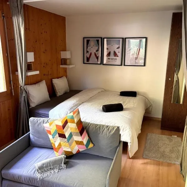 Studio rénové et chaleureux en plein centre坐落于克莱恩蒙塔纳,距离克莱恩斯希瑞高尔夫球场有不到一公里,距离锡永高尔夫球场有22公里,距离Mont Fort有39公里。这家自助式公寓拥有花园、烧烤设施、免费WiFi和免费私人停车位。 这家公寓提供1间卧室、1间浴室、床上用品、毛巾、平板电视、用餐区、设施齐全的厨房以及花园景露台。