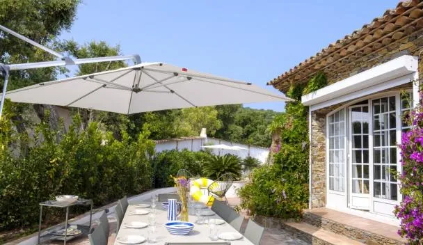 Maison Golfe de Saint Tropez位于圣马克西姆,配备带免费WiFi的花园景客房,配备露台。这家住宿距离中央海滩(Central Beach)有19分钟步行路程,提供花园和免费私人停车位。 这家空调别墅配有3间卧室、起居室、带冰箱和咖啡机的设施齐全的厨房以及1间带浴缸和吹风机的浴室。这家别墅也提供休息区和1间浴室。 这家别墅距离Chateau de...