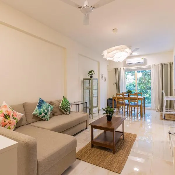 Palm View 1BHK with Pool & Café - Sazo Stays坐落于Goa,享有花园景,配有客房、私人泳池和阳台。这家住宿距离恰波拉堡有8.7公里,配备露台和免费私人停车位。 这家空调公寓配有1间独立卧室、设施齐全的厨房以及2间浴室。这家公寓也配有2间浴室。 这家公寓距离蒂维姆火车站有11公里,距离邦耶稣大教堂有26公里。马诺哈帕里卡尔国际机场距离住宿有17公里。