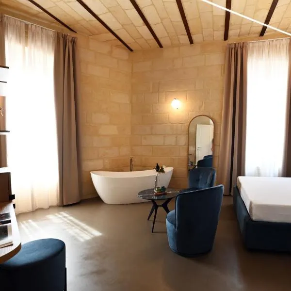 Lo Stemma Luxury Boutique Hotel坐落于马泰拉,距离Matera Cathedral有不到11分钟步行路程,配备礼宾服务、禁烟客房、露台、免费WiFi以及酒吧。这家豪华型酒店提供客房服务和24小时前台。住宿可安排私人停车位,需额外收费。 这家酒店为客人提供空调客房,配有书桌、电热水壶、迷你吧、保险箱、平板电视以及带坐浴盆的私人浴室。