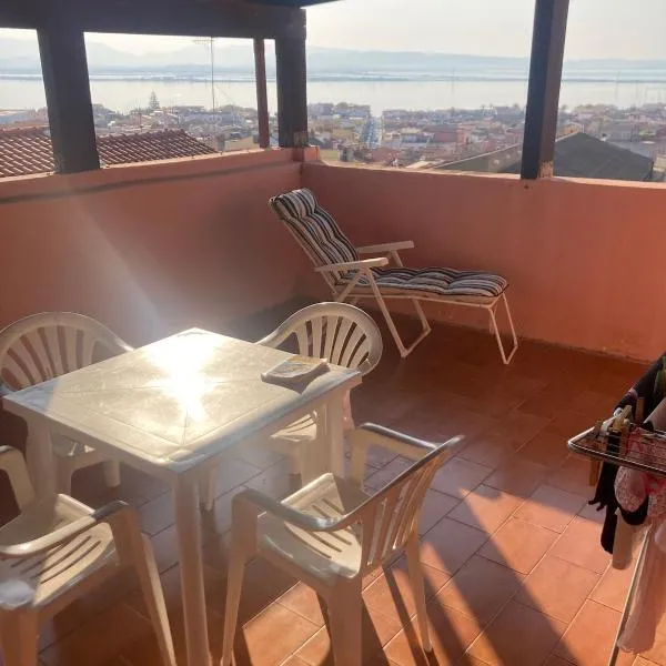 Vista mare a Sant'Antioco位于圣安蒂奥科,提供露台。这家住宿享有市景和海景。 这家度假屋配有1间卧室、带冰箱和烤箱的厨房以及1间带坐浴盆、吹风机和洗衣机的浴室。这家度假屋也拥有休息区以及1间带淋浴设施和浴缸的浴室。 卡利亚里埃尔马斯机场距离住宿有80公里。