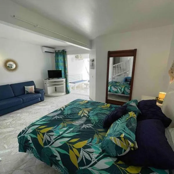Studio sucrier 150m des plages orient bay坐落于东方湾。这家空调住宿距离东方湾海滩(Orient Bay Beach)有5分钟步行路程,为客人提供免费WiFi,内部提供私人停车位。 这家公寓拥有平板电视、带冰箱和烤箱的设施齐全的厨房以及带淋浴设施和吹风机的浴室。这家公寓配备毛巾和床上用品。 住宿内部配备露台。