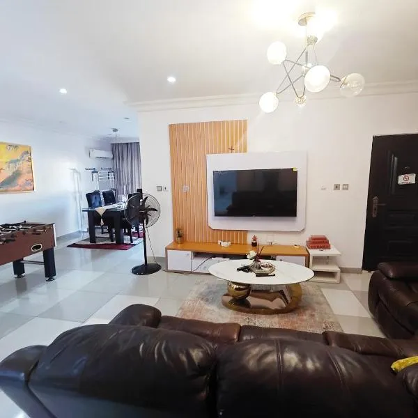 Honeycomb Shortlets位于拉各斯,享有池景,配备客房、私人泳池和露台。这家住宿距离勒奇保育中心有12公里,提供户外游泳池和免费私人停车位。 这家空调度假屋配有4间卧室、起居室、带冰箱和电热水壶的设施齐全的厨房以及4间带淋浴设施和吹风机的浴室。这家度假屋还配备带有线频道的平板电视以及4间带浴缸的浴室。 这家度假屋提供热水浴池。