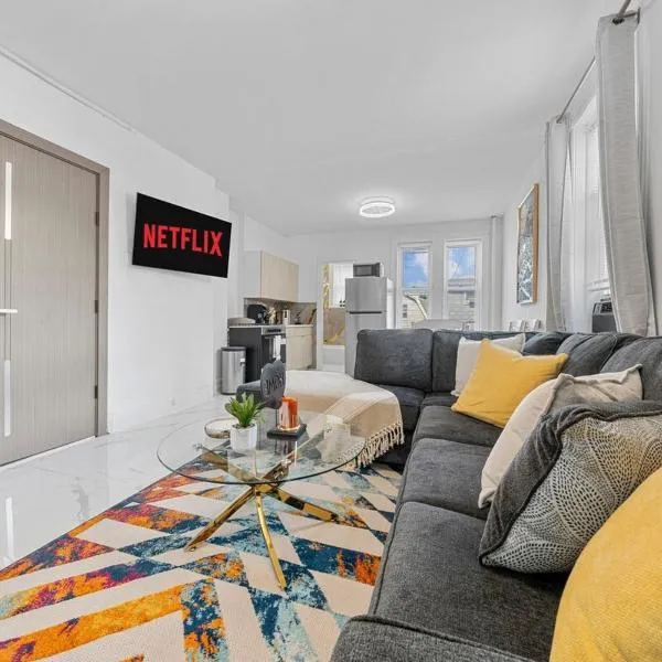 Deluxe 3 Bed Apt Min to NYC位于西纽约,提供免费WiFi,距离贾维茨会展中心有7公里,距离宾夕法尼亚车站有7.3公里,距离时代广场有7.5公里。这家公寓距离麦迪逊广场花园有7.5公里,距离百老汇剧院有8公里。 这家公寓提供3间卧室、带冰箱和烤箱的设施齐全的厨房以及1间带淋浴设施和免费洗浴用品的浴室。这家空调公寓还配备平板电视以及1间带吹风机的浴室。