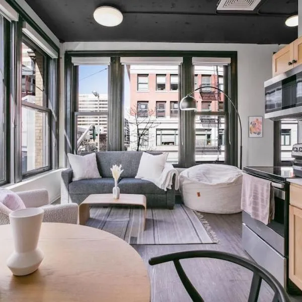 2BR Apartment in DT with Parking坐落于斯波坎,距离斯波坎会议中心有16分钟步行路程,距离针织工厂运动场有1.7公里,距离空中缆车有2.1公里。住宿距离斯波坎中心有15分钟步行路程,提供免费WiFi和24小时前台。 这家空调公寓配有2间卧室、起居室、带冰箱和电热水壶的设施齐全的小厨房以及2间带淋浴设施和免费洗浴用品的浴室。