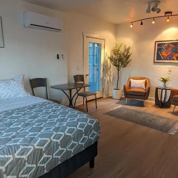 Hotel McCoy - Art, Coffee, Beer, Wine位于土桑,距离图森会展中心有2.6公里,提供户外游泳池、免费私人停车位、健身中心和共用休息室。这家舒适型酒店配备露台,提供带免费WiFi和私人浴室的空调客房。住宿配备晚间娱乐和客房服务。 这家酒店的每间客房都配有书桌和平板电视。部分客房提供带冰箱、微波炉和炉灶的小厨房。