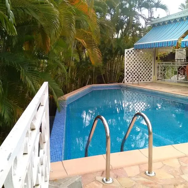 Charmant Bungalow Coco位于圣安尼,配备带免费WiFi的花园景客房,配有户外游泳池、花园和露台。 这家空调公寓配有1间卧室、起居室、带冰箱和咖啡机的设施齐全的厨房以及1间带淋浴设施和吹风机的浴室。这家公寓也配备1间浴室。 这家公寓距离拉卡拉维尔海滩(La Caravelle Beach)有8分钟步行路程。彭德-雅皮特国际机场距离住宿有21公里。