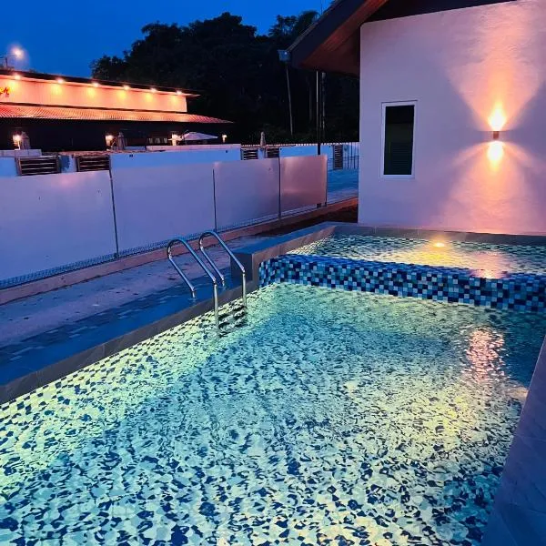 BUNGALOW D'CENANG- Private Pool位于珍南海滩,提供带免费WiFi的河景客房,配备户外游泳池、花园和共用休息室。这家住宿距离珍南海滩(Cenang Beach)有不到一公里,配备露台和免费私人停车位。 这家空调别墅配有4间卧室、起居室、带冰箱和电热水壶的设施齐全的厨房以及4间带坐浴盆和浴缸或淋浴设施的浴室。4间浴室提供免费洗浴用品。...