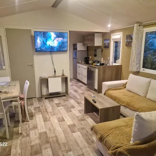 Mobilhome bord de mer Gujan Mestras提供带庭院的住宿,距离拉休姆海滩(La Hume Beach)有不到一公里。内部提供私人停车位。 房间配有空调、设施齐全的厨房、电视以及带淋浴设施、免费洗浴用品和吹风机的私人浴室。住宿还配备洗碗机、微波炉和吐司机以及咖啡机和电热水壶。 这家露营地提供儿童游乐区。 客人可以在室外泳池游泳,在花园内放松身心,或体验骑行。