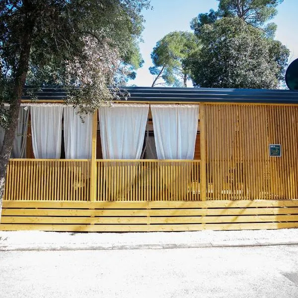 ARIA Mobile Home, Oaza Mira 5 Star Camping, Dalmatia配备餐厅、季节性室外泳池、花园和酒吧,距离奥扎米拉海滩(Oaza Mira Beach)有7分钟步行路程。住宿配备免费WiFi,内部提供私人停车位。 这家露营地为客人提供露台、休息区、平板电视、带冰箱和微波炉的设施齐全的厨房以及带淋浴设施和免费洗浴用品的私人浴室。