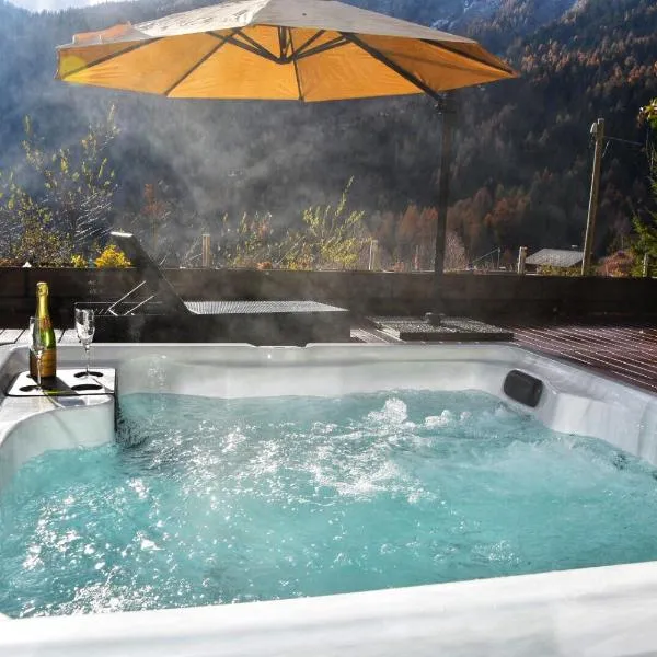Chalet 4 Saisons with jacuzzi - Ovronnaz位于奥瓦伦纳茨,享有花园景,提供免费WiFi。这家小木屋距离Mont Fort有不到27公里。 这家小木屋配有4间卧室、4间浴室、床上用品、毛巾、带有线频道的平板电视、用餐区、设施齐全的厨房以及山景露台。住宿配有4间带淋浴设施、热水浴池和浴缸的浴室,提供免费洗浴用品和吹风机。