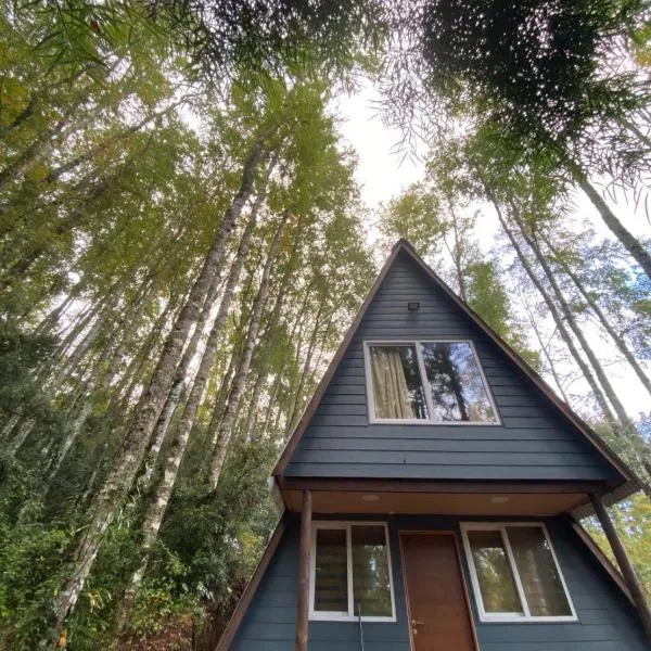 Refugios de bosque en Coñaripe享有山景,配备阳台和咖啡机,距离克纳瑞普温泉约有18公里。这家住宿距离吉奥梅特里克温泉有13公里,提供露台和免费私人停车位。 这家小木屋配备1间卧室、带冰箱的设施齐全的厨房以及1间带淋浴设施和吹风机的浴室。这家小木屋也为客人提供休息区和1间浴室。 这家小木屋提供烧烤设施。Refugios de bosque en...