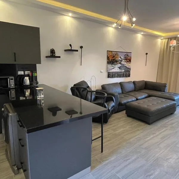 La Hacienda - Ras Sedr Chalet - Ras Sudr享有池景,配备户外游泳池、花园和餐厅,距离拉哈仙达海滩(La Hacienda Beach)约有6分钟步行路程。这家公寓提供免费私人停车位和客房服务。 这家公寓享有海景,配备露台,配有1间卧室、起居室、卫星频道平板电视、设施齐全的厨房以及1间带淋浴设施和浴缸的浴室。这家公寓也配备休息区和1间浴室。...