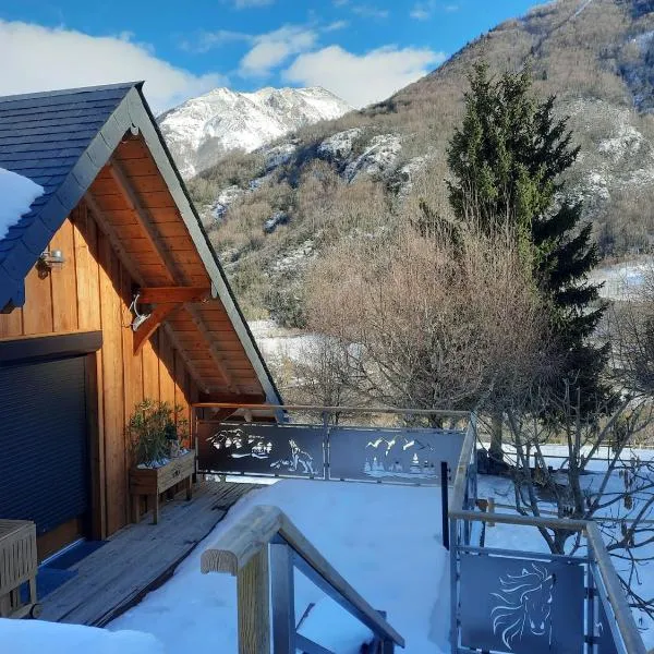 Joli chalet 60m2 proche du centre. parking. balcon享有山景,配备阳台和电热水壶,距离洛德丝火车站约有31公里。内部提供私人停车位。 这家公寓配有2间独立卧室、起居室、带冰箱和洗碗机的设施齐全的小厨房以及1间浴室。这家公寓也配备1间浴室。
