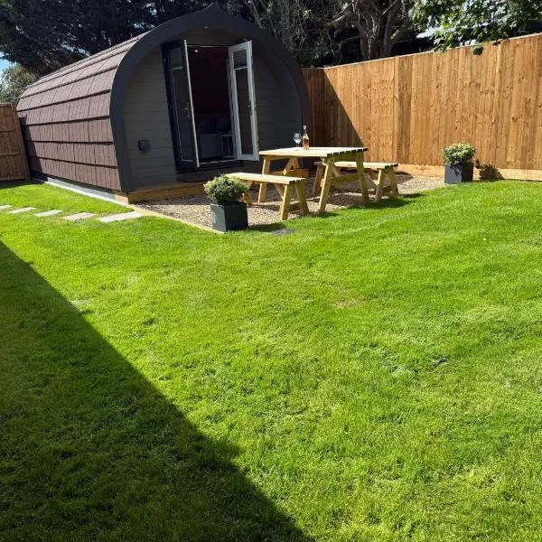 Romantic Countryside Lodge with Hot Tub位于North Mundham,距离琴切斯特火车站有6.2公里,配备庭院、花园和免费WiFi。这家住宿享有花园景,距离奇切斯特大教堂有7.6公里,距离古德伍德赛车场有8.7公里。 这家小木屋配备1间卧室、带冰箱和洗碗机的厨房以及1间带热水浴池、免费洗浴用品和洗衣机的浴室。这家小木屋还提供电视以及1间带吹风机的浴室。