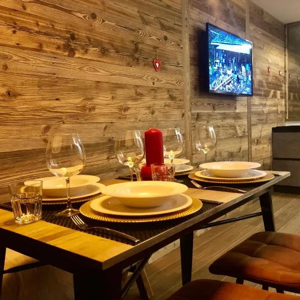 HelloCHALET - Friends Ski House坐落于布勒伊-切尔维尼亚,距离克莱因马特宏峰有8.6公里,距离洛莎高原缆车有3分钟步行路程,配备阳台和免费WiFi。 这家1卧室公寓提供起居室、平板电视、带冰箱和微波炉的设施齐全的小厨房以及1间带吹风机的浴室。这家公寓也配有1间浴室。 Torino -都灵机场距离住宿有114公里。