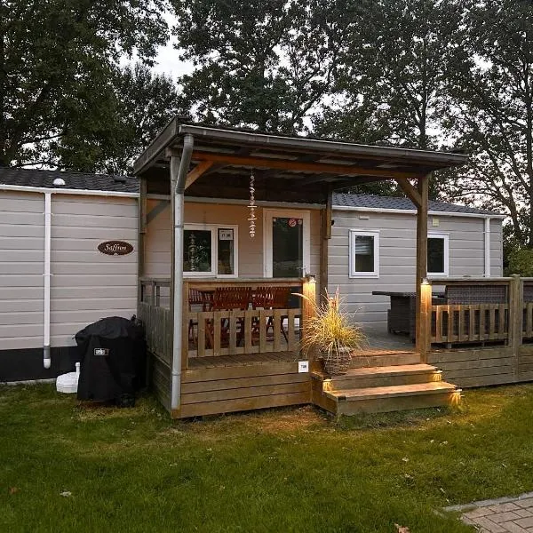Strand-chalet Luna - 700 mtr van het strand van Ouddorp享有花园景,配备露台和庭院,距离鹿特丹阿侯伊体育馆约有50公里。这家住宿距离奥多普海滩(Ouddorp Beach)有7分钟步行路程,提供花园和免费私人停车位。 这家度假屋配有2间卧室、起居室、带冰箱和咖啡机的设施齐全的厨房以及1间带淋浴设施和吹风机的浴室。这家度假屋也提供1间浴室。...