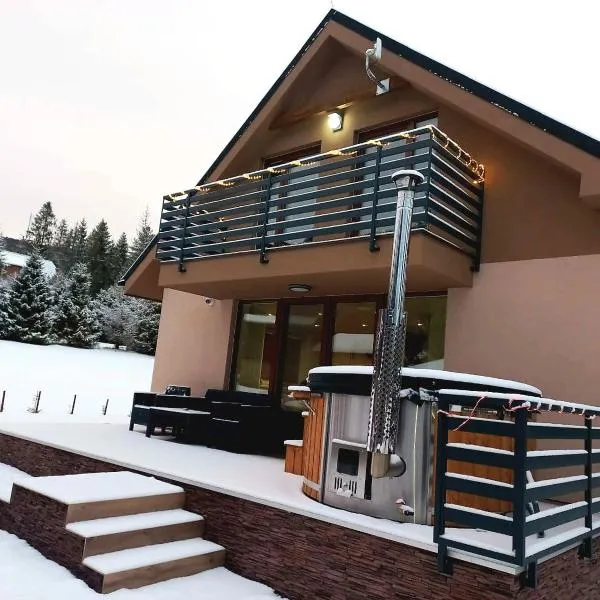 Chalet Oasis - Luxury 5-Bedroom Chalet with Panoramic Views位于Huty,距离奥拉瓦城堡有24公里,提供花园、免费WiFi、共用厨房和共用休息室。这家山林小屋配备免费私人停车位。客人可以在周边地区体验徒步、滑雪和乒乓球等活动。