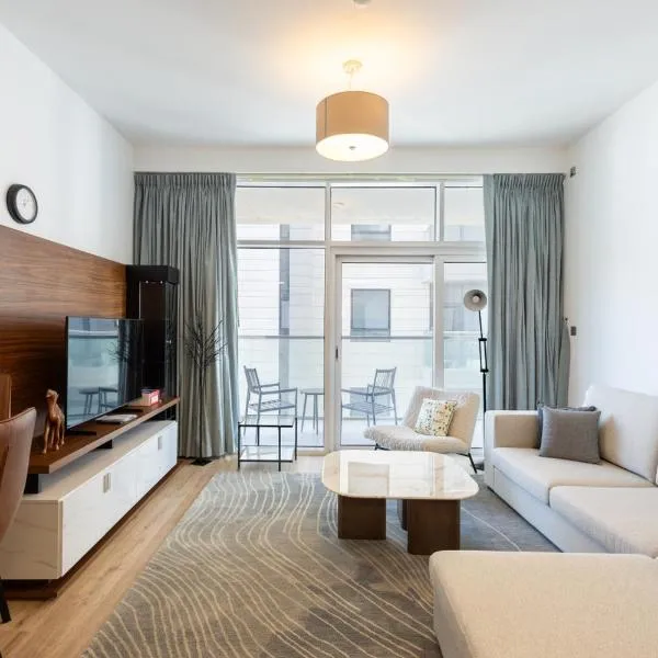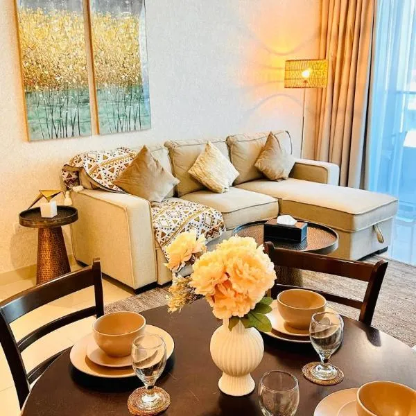 Silkhaus Chic 2BDR in Radiant Boulevard坐落于Mushayrib,距离阿尔华达购物中心有不到5.4公里,距离豪森宫殿有6.8公里,提供免费WiFi、空调和健身中心。客人可以使用庭院和室外泳池。 这家公寓提供2间卧室、带冰箱和烤箱的厨房、洗衣机以及2间带免费洗浴用品和吹风机的浴室。这家公寓也配备2间浴室。