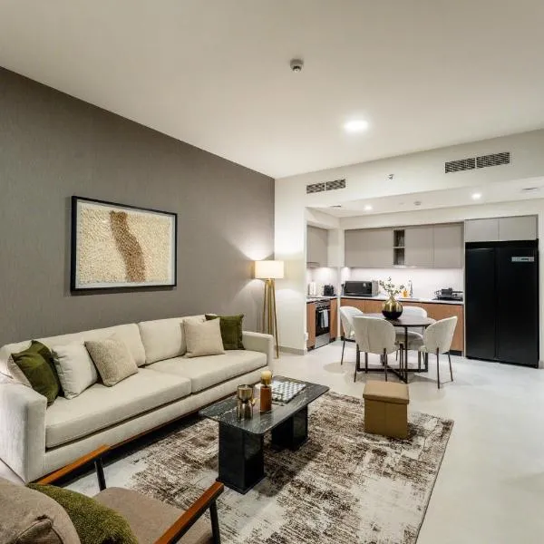 Luxury Cozy Minimalist 1BR Haven Connected to Dubai Mall位于Sabkhah中心,配有户外游泳池、花园和免费WiFi,为驱车前来的客人提供免费私人停车位。这家公寓配备私人泳池。客人可以在周边地区体验骑行和桌球等活动。...