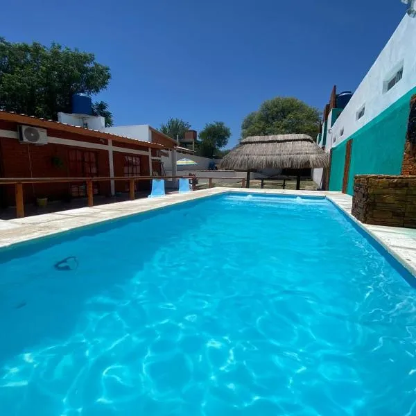 Andamundos Hostel features a garden, private beach area, a restaurant and bar in Mina Clavero.