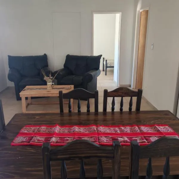 Complejo Willy Pampa坐落于圣胡安省的巴雷阿尔,配有庭院,享有山景。这家自助式公寓拥有花园和免费私人停车位。 这家空调公寓配有1间卧室、起居室、带冰箱和电热水壶的设施齐全的厨房以及1间带坐浴盆和淋浴设施的浴室。这家公寓也配备休息区和1间浴室。 明戈福斯蒂萨米恩托机场距离住宿有223公里。