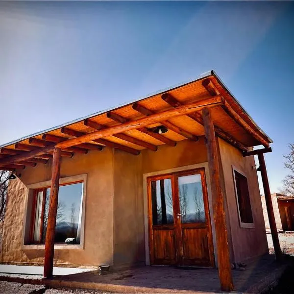 FINCA TIERRA CALMA Casa 2坐落于圣胡安省的巴雷阿尔,配有露台,享有山景。这家自助式小木屋拥有花园和免费私人停车位。 这家小木屋配有2间卧室、起居室、带冰箱和咖啡机的设施齐全的小厨房以及1间带坐浴盆和淋浴设施的浴室。1间浴室提供免费洗浴用品。 明戈福斯蒂萨米恩托机场距离住宿有199公里。